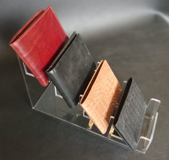 ESPOSITORE PER POCHETTE-PORTAFOGLI IN PLEX 4 POSTI