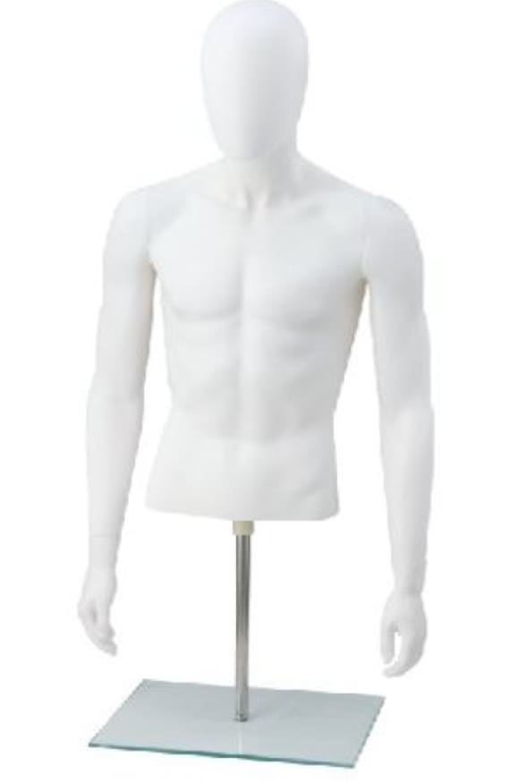 Torso uomo in plastica bianco con braccia, base con asta regolabile cm 40