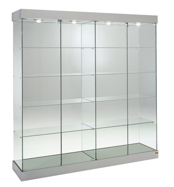 Cm 142 x 46 x 180 h. cristalli temperati-antine con serratura-4 faretti-base con ruote
